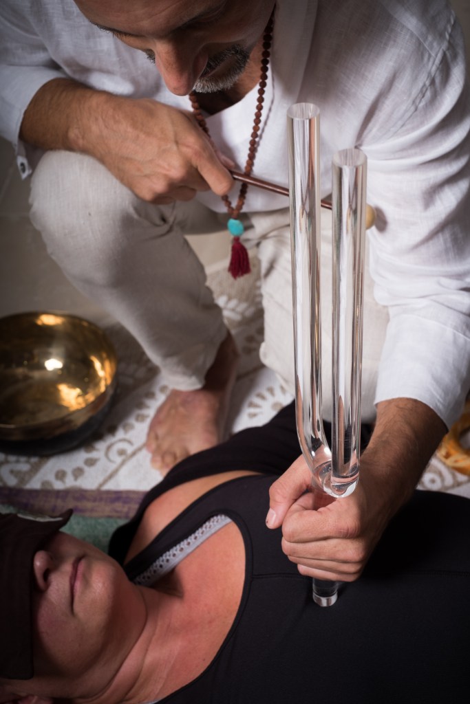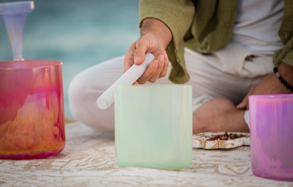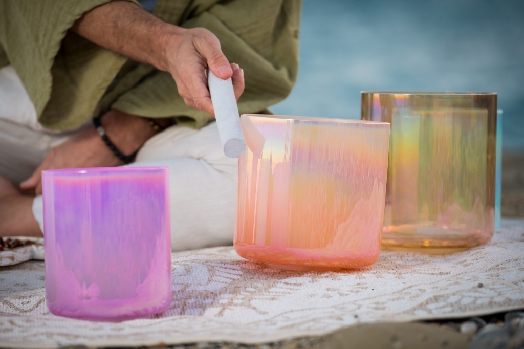 In general, a sound bath is a meditative experience where those in attendance are “bathed” in sound waves. These waves are produced by various sacred instruments, including singing bowls, rain sticks, chimes, tuning forks, and even the human voice itself. During my sound baths, I let the participants go through various stages, the three main ones being: